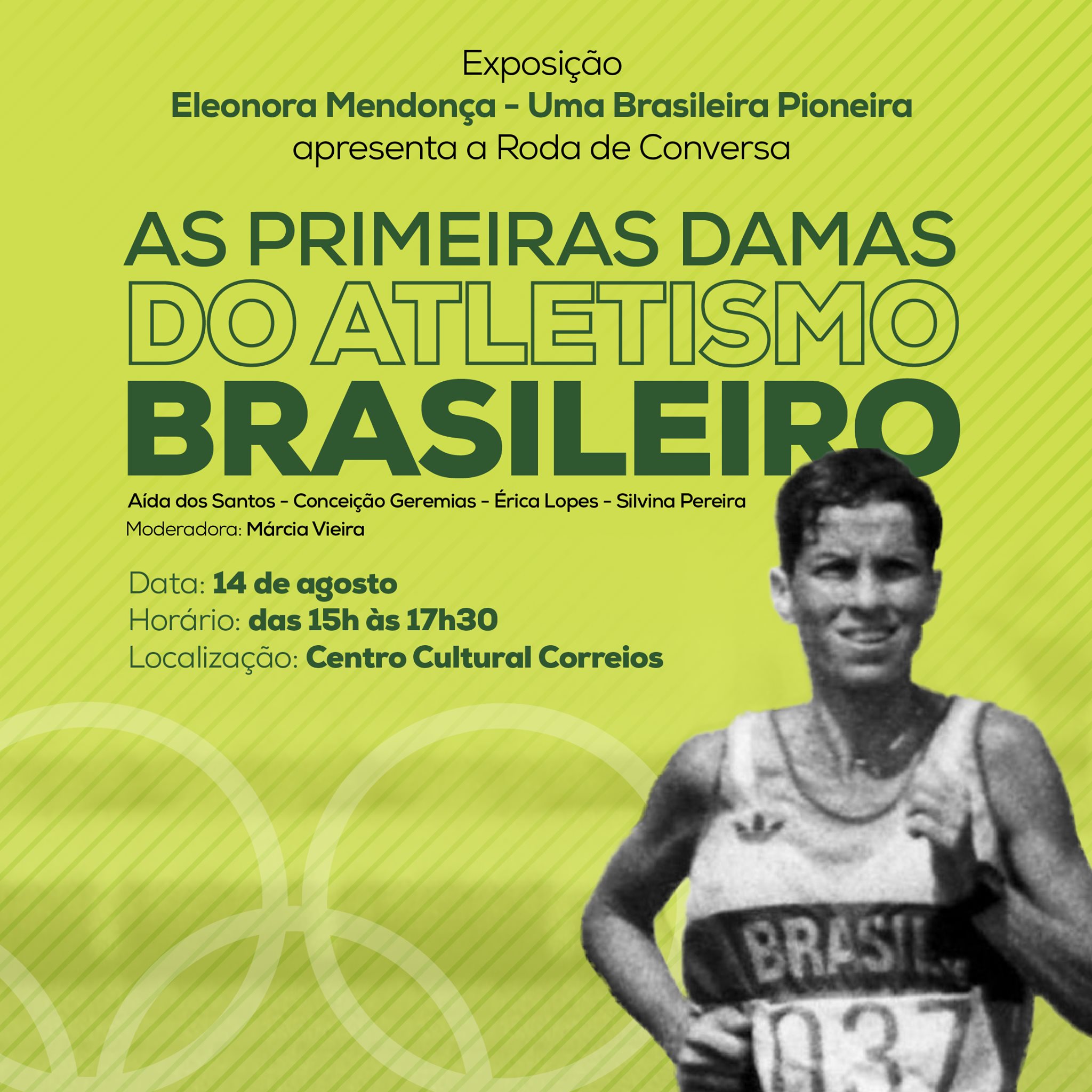 No próximo sábado (14/08), das 15h às 17h30, no Centro Cultural dos Correios no Centro do Rio de Janeiro. Não perca a oportunidade de ouvir e conversar com mulheres que fizeram história no atletismo brasileiro sobre suas trajetórias, conquistas e a luta pela igualdade de gênero no esporte! ![]()