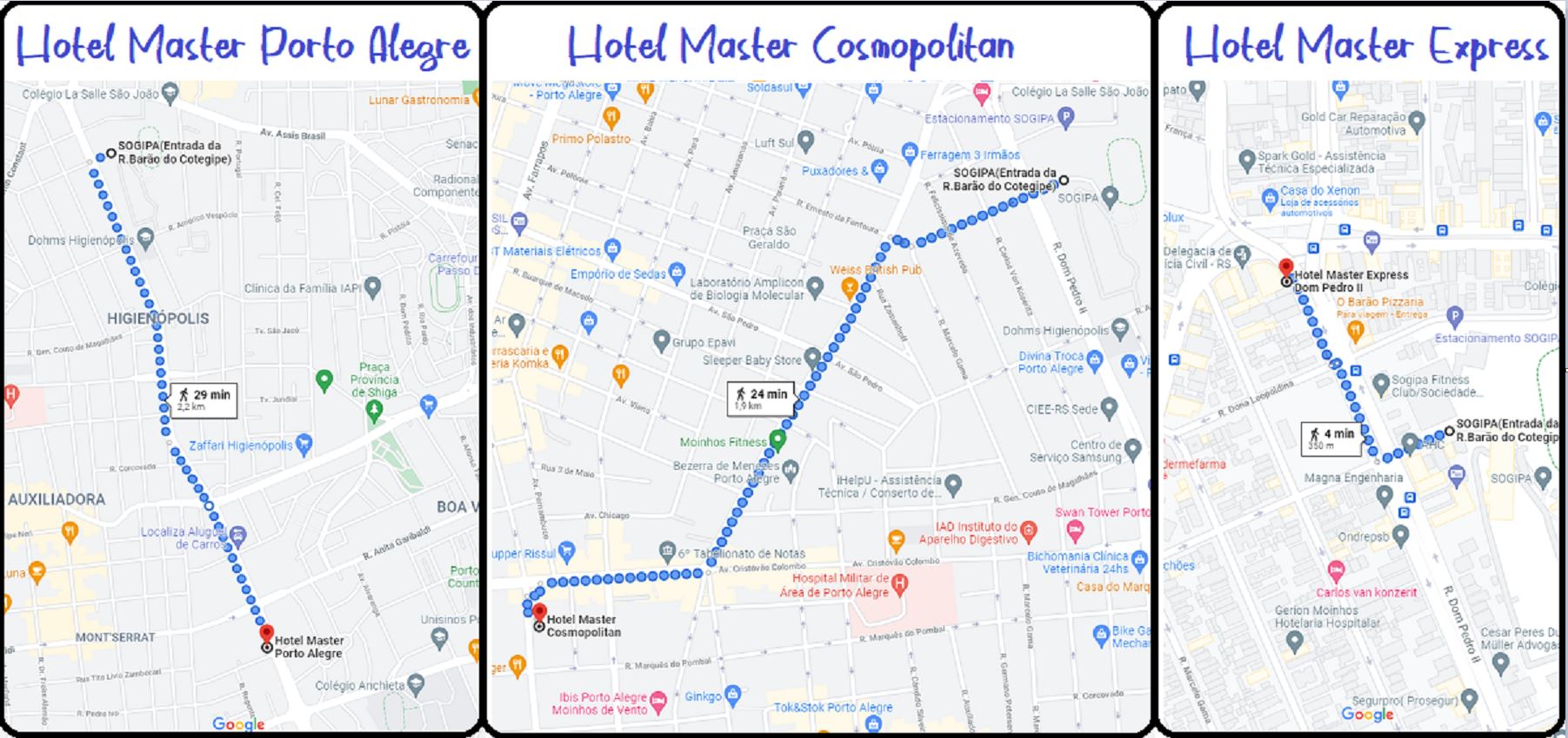 Localização dos Hotéis Master em relação Sogipa: